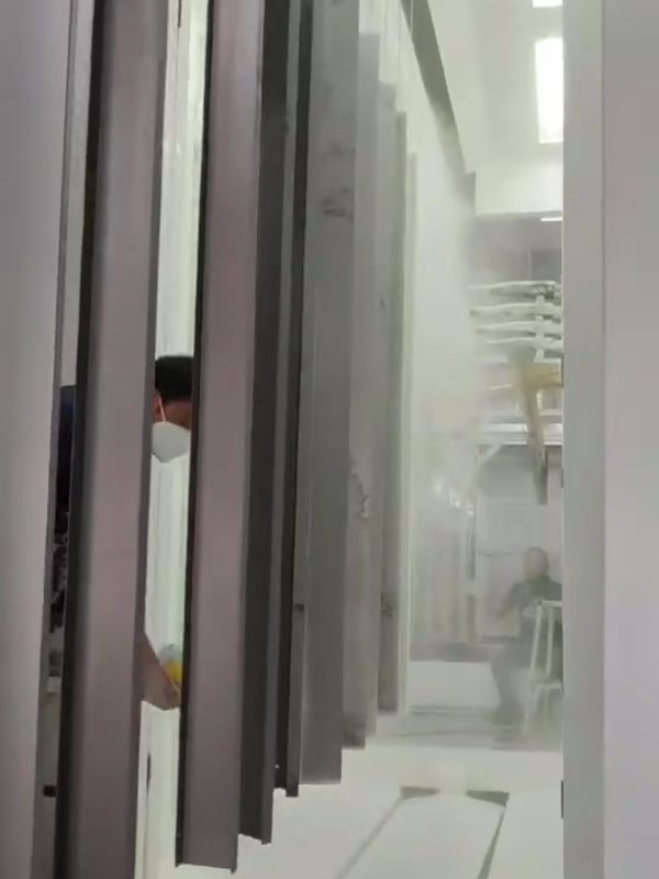 Loading⇒ Spray pre-degreasing and residue removal⇒main degreasing by swimming + ultrasonic + heating cleaning ⇒ Spray water washing (I) ⇒ Spray water washing (II) ⇒ Activation by swimming ⇒ spray washing (3) ⇒ spray washing (4), swim lay type passivation, spray washing (5) ⇒ spray washing (6) ⇒ pure water cleaning + adjustable automatic blow water, drop of water, dehydration drying furnace, natural cooling, online roast ⇒ under a belt anti-pull installation baked ⇒ on a PP board make automatic coating powder spraying cabinet⇒ hurricane recovery Powder supply center ⇒ Secondary recovery system ⇒ Grinding cabinet ⇒ Curing oven drying ⇒ Natural cooling⇒ QC inspection ⇒ Unloading ⇒ Packaging